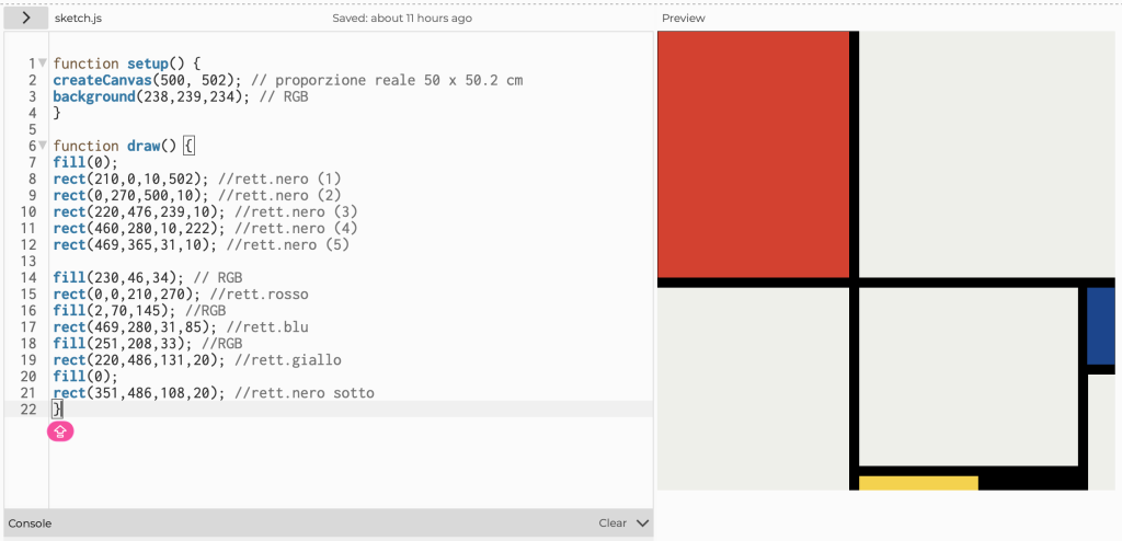 Le misure dell’opera “Composition No. III, with Red, Blue, Yellow and Black” (1929) di Piet Mondrian sono: 50 x 50,2 cm. Per ottenere una tavola dalle dimensioni opportuni (dovendo lavorare in pixel) scelgo di mantenere le stesse proporzioni, ossia 500 x 502, pari a 1×1.004.
