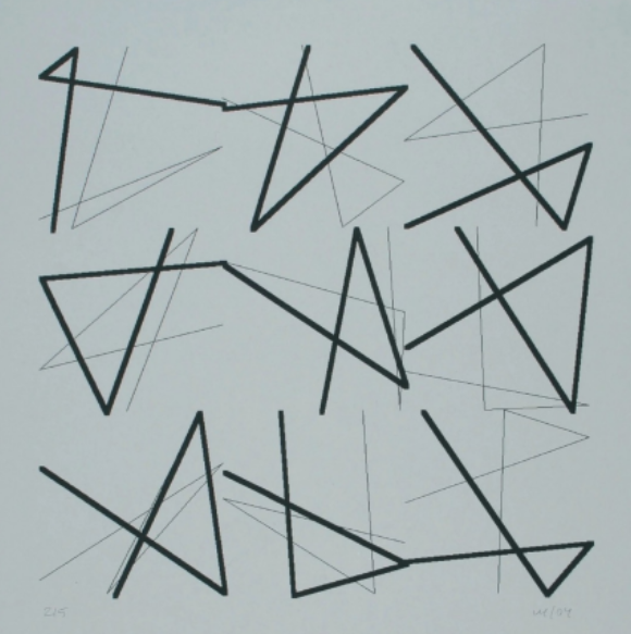Ho riprodotto un’opera di Lewitt, nel primo link potrete vedere la riproduzione fedele, nel secondo invece ho aggiunto un’interazione: posizionando il cursore del mouse vicino ad una delle linee della figura più scura in alto a sinistra le linee più spesse diventeranno tutte rosse.