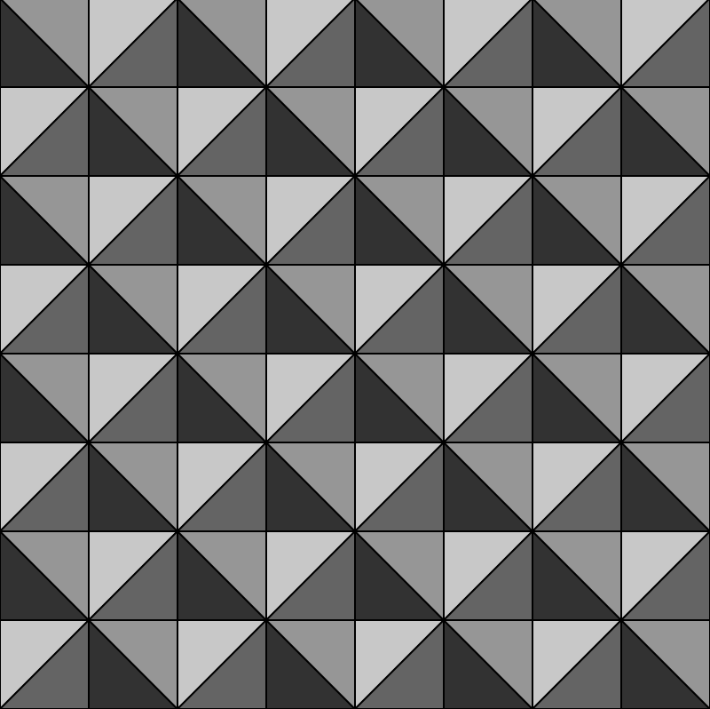 Per questo Assignment ho voluto creare un pattern geometrico basato sulla suddivisione di una griglia in triangoli con diverse tonalità di grigio.