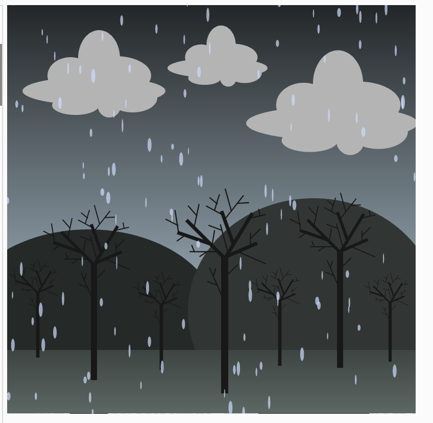 //extra: pioggia che cade, trovato codice in libreria p5js, lo modifico per rendere lo scenario dinamico e interattivo.